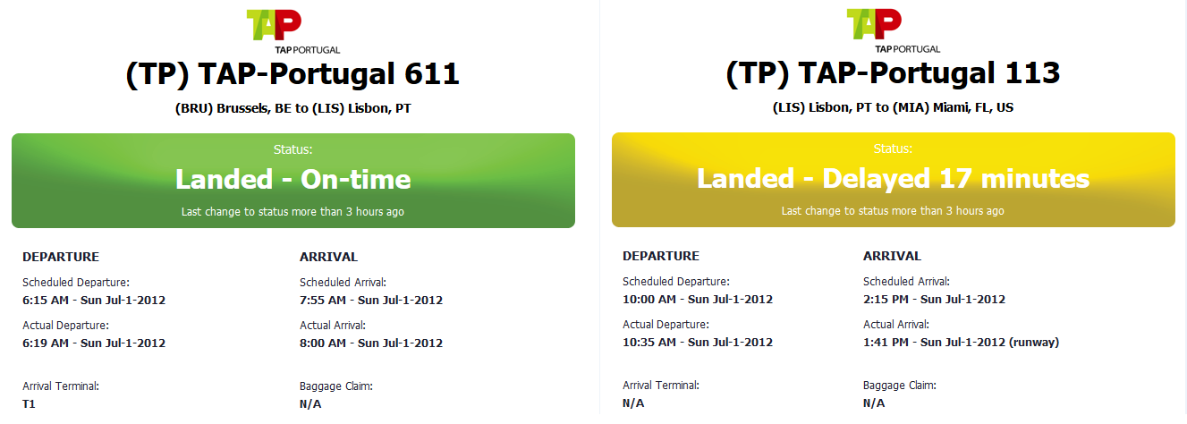 - Brussel => Lissabon (TAP Portugal 611)