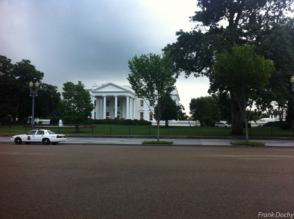 Onze dag begint zeer vroeg, want we hebben een White House tour kunnen strikken om 7u30. Uitnodiging kunnen regelen door een aanvraag naar een senator te sturen zo’n 8 maanden voordien. We waren mooi op tijd, maar jammergenoeg waren onze Belgische identiteitskaarten niet voldoende. We moesten dus terug naar het hotel achter onze paspoorten. Gelukkig mochten we gelijk welk uur terugkeren. Het begon dan nog eens te regenen op weg naar het hotel dus onze ochtendslaapkop heeft wat verloren tijd veroorzaakt.