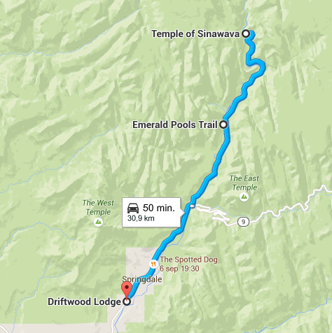 Daarna nemen we de shuttle terug en stappen af aan The Grotto. Daar doen we de korte The Grotto trail richting Zion lodge. Daar lunchen we vooraleer aan de Emerald pools te beginnen. Het is geen zo’n lange hike naar de Upper Emerald Pools, maar het was toch vrij afzien. Zeker als je al lang wakker bent en wat kilometers achter de boeg hebt, gepaard met de temperatuur boven de 30 graden en het constante klimwerk. Al bij al was het de hike niet waard, want er was nauwelijks iets te zien bij de Middle en Upper Emerald pools.
