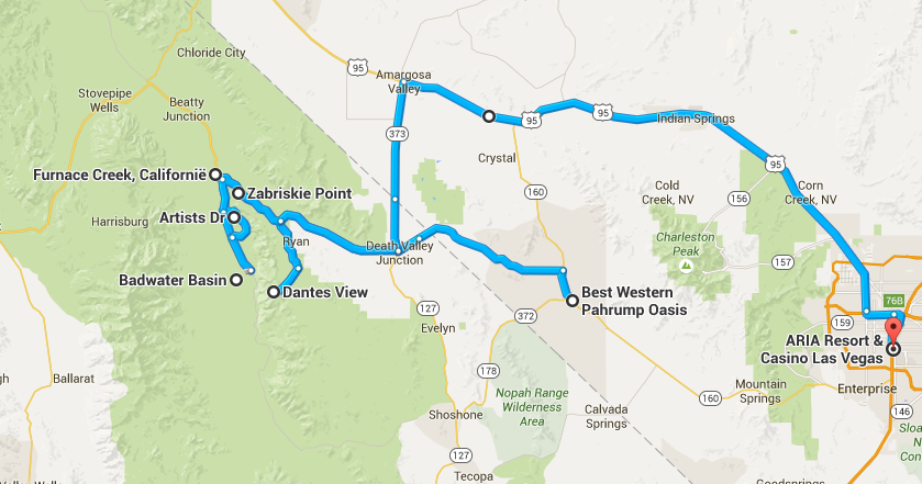 Vanuit Beatty is het nog zo’n 2,5u rijden richting onze eindstop: Las Vegas! In de ochtend kreeg ik al een mail voor online in te checken. Rond 16u30 komen we in Las Vegas toe en kunnen we de ‘ mobile check in’ lijn gebruiken, die gelukkig veel korter is dan de gewone checkin. Ik pas de 20 USD trick toe. We mogen van verdieping 12 naar 27 en krijgen een corner room met zicht op The Strip. De 20 $ krijg ik overigens terug, heel vriendelijk! We installeren ons op ons gemak en verkennen kort al even The Strip. Het is in het begin goed zoeken om ergens te geraken, nogal een doolhof.. We eten bij Gordon Ramsay’s BurGR in Planet Hollywood. Daarna keren we terug naar Aria waar we in de beste kamer van deze hele reis kunnen overnachten.