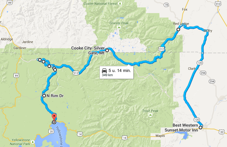 Het is mooi weer als we vertrekken richting Red Lodge. Vanuit Montana nemen we de fameuse Beartooth Highway richting Yellowstone. We dachten om de Hellroaring Plateau nog te doen, maar de weg lag er gewoon te slecht bij om er aan te beginnen.