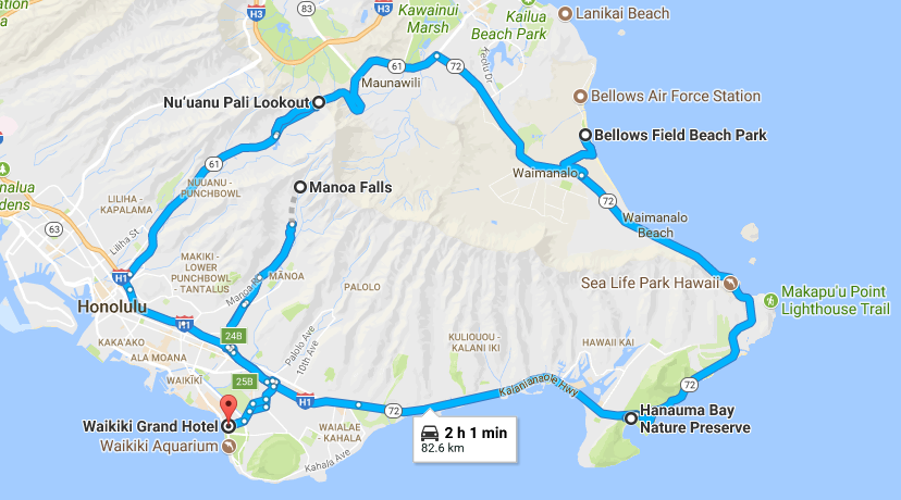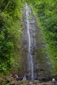 Vandaag trekken we onze hiking shoes aan, en dat zullen we geweten hebben! Na ontbijt bij Starbucks met een grande iced caramel macchiato nemen we de auto richting Manoa Falls. Een halfuurtje en 5$ later staan we op de parking en beginnen we er aan. Zoals een echte toerist het betaamd: met de Starbucks cup nog in de hand! De hike is een kleine 3km heen en terug met een hoogteverschil van 250m. Niet extreem intensief, maar het feit dat je door de vochtige bossen wandelde ( water viel soms nog naar beneden) begon je je meteen kapot te zweten na enkele minuten. Een halfuurtje later staan we bij de waterval en bekomen we even van de warmte en het feit dat onze t-shirts aan onze ruggen plakken! Het afdalen gaat natuurlijk een stuk makkelijker en ongeveer 1u vanaf vertrek staan we terug aan de auto. Eerste stop: de bnb, om te douchen!