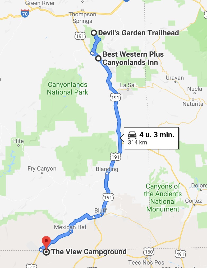 We zijn vroeg uit de veren want we willen nog een blitsbezoek brengen aan Arches National Park. We ontbijten in het hotel en tegen 9u zijn we uitgechecked en is de auto terug geladen. We rijden naar Arches NP en zijn na enkele minuten reeds binnen. We rijden eerst naar het verste punt, Devil’s GardenTrailhead , om daar de korte hike naar Tunnel Arch te doen. Daarna keren we terug en stoppen we onderweg nog aan enkele viewpoints, oa Delicate Arch viewpoint, Balanced Rock,… Tegen 12u zijn we terug beneden en gaan we naar de lokale deli in Moab voor een sandwich die we on the go opeten richting Monument Valley.