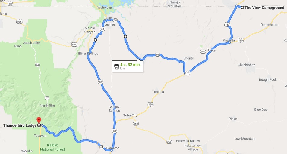 Na de tour rijden we nog even naar de Glen Canyon Dam waar we de visitor center bezoeken, om dan tegen 15u te rijden naar Page Municipal Airport waar we een heli tour hebben. Origineel was het plan dat we op de Tower Butte gingen landen, maar doordat er teveel wind is was dit niet mogelijk. We vliegen dan nog wat verder rond en krijgen mooie views op Horseshoe Bend, Glen Canyon Dam, Wahweap,… We staan tegen 17u terug aan de grond en beginnen meteen aan de laatste rit voor de dag: Grand Canyon. We stoppen nergens en komen om 19u30 aan bij de Bright Angel Lodge ( waar we moeten inchecken voor onze kamer in de Thunderbird lodge). We eten bij Arizona Steakhouse en ik stel later vast dat de wifi nog steeds even erbarmelijk is 🙁