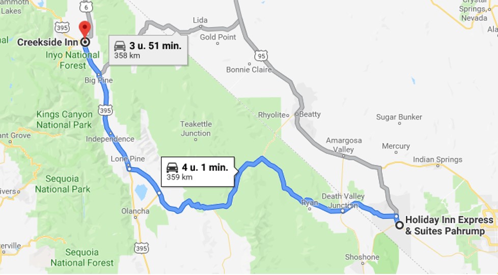 Net voor we Death Valley verlaten nemen we nog even pauze bij Father Crowley Point. Van daaruit is het nog eventjes rijden naar Bishop waar we rond 16u30 toekomen. Hier is de temperatuur al draaglijker met een 36 graden 🙂